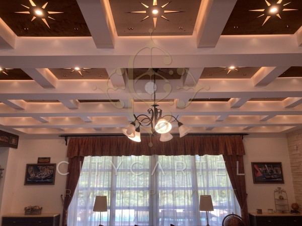 A ház földszintjén az előszobába érkezünk, onnan nyílik a nagyméretű nappali, melynek része a rusztikus konyha, étkező és bár is. A nappaliból megközelíthető a kinti, fedett terasz, mely közvetlenül a medencével és parkosított udvarral kapcsolódik. A földszinten található 4 hálószoba és 2 fürdőszoba, valamint egy wellness helyiség jakuzzival és szaunával, mely a kerttel is kapcsolódik.
