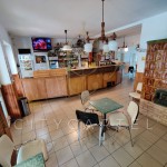 Hasznos alapterülete 134 m2, ami a következő részekből áll: vendégtér, konyha, raktár, öltöző, férfi-női WC, kiegészítő eladóhelyiség, pince és fedett terasz.