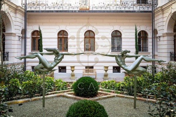 A külső díszudvar szökőkúttal és díszfákkal kialakított, az épületen belül négy különleges udvarral rendelkezik az épület: